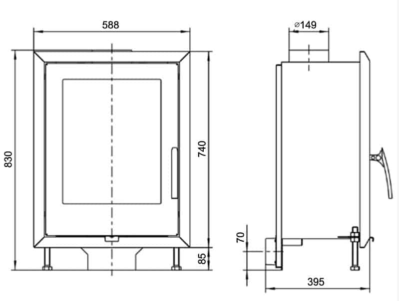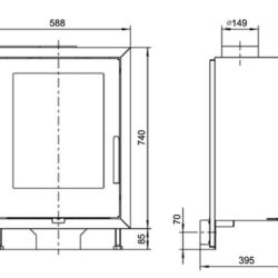| Výška hrdla kouřovodu nad podlahou | 835 + vzdálenost od země mm |