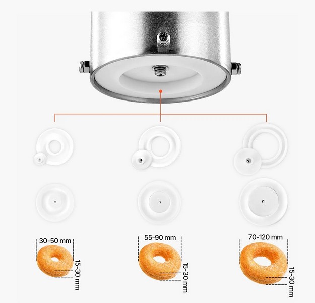 | Velikosti donutů | 30–50 mm, 55–90 mm, 70–120 mm |