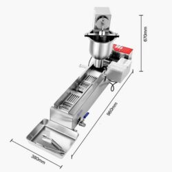 Vyrobeno z nerezové oceli 304 vhodné pro potravinářské použití. Snadno se čistí a je navrženo pro dlouhodobý provoz. Díky 5,5litrovému zásobníku těsta a 14,5litrové olejové nádobě zvládnete i velké objemy výroby bez přerušení.