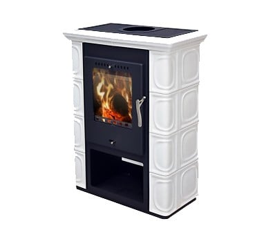 Krbová kamna Borgholm Keramik slonová kost, kachlová krbová kamna, průměrný výkon 7 kW (rozsah výkonů 3,5 až 10,5 kW), účinnost 79%, pro kouřovod DN 150 nahoru,