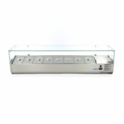 Pultová přípravná chladnička je ideální pro každodenní intenzivní používání v každé profesionální kuchyni. Lze do ní umístit osm nádob GN o velikosti 1/3, které pomáhají udržovat ingredience ve správné teplotě a připravené k okamžitému použití. Pultová přípravná chladnička se dobře hodí pro úkoly, jako je rychlé plnění připravovaných sendvičů, přidávání polev na pizzu nebo příprava salátů. Nádoby GN a víka nejsou součástí dodávky, ale lze je objednat samostatně prostřednictvím našich webových stránek.