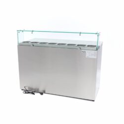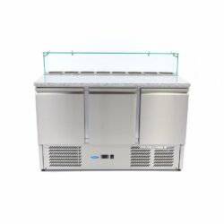 Pokud každý den připravujete čerstvou pizzu s těmi nejchutnějšími náplněmi, pak je tato krásná chlazená přípravná stanice pro vaši kuchyni nepostradatelná. Díky žulovému pultu této chladničky na pizzu se těsto nelepí a může být vyválené a připravené k použití. Díky chladicí vitríně, která je připevněna na horní straně, jsou všechny vaše oblíbené náplně nejen vidět, ale také zůstávají chladné až do poslední vteřiny. Tento prémiový kuchyňský spotřebič se dodává také s nerezovými podpěrami pro uchycení GN nádob, ačkoli nádoby a víka nejsou součástí balení. Ty lze objednat samostatně prostřednictvím internetového obchodu.