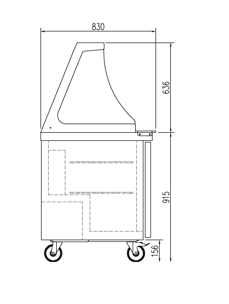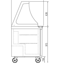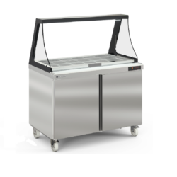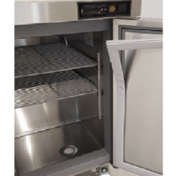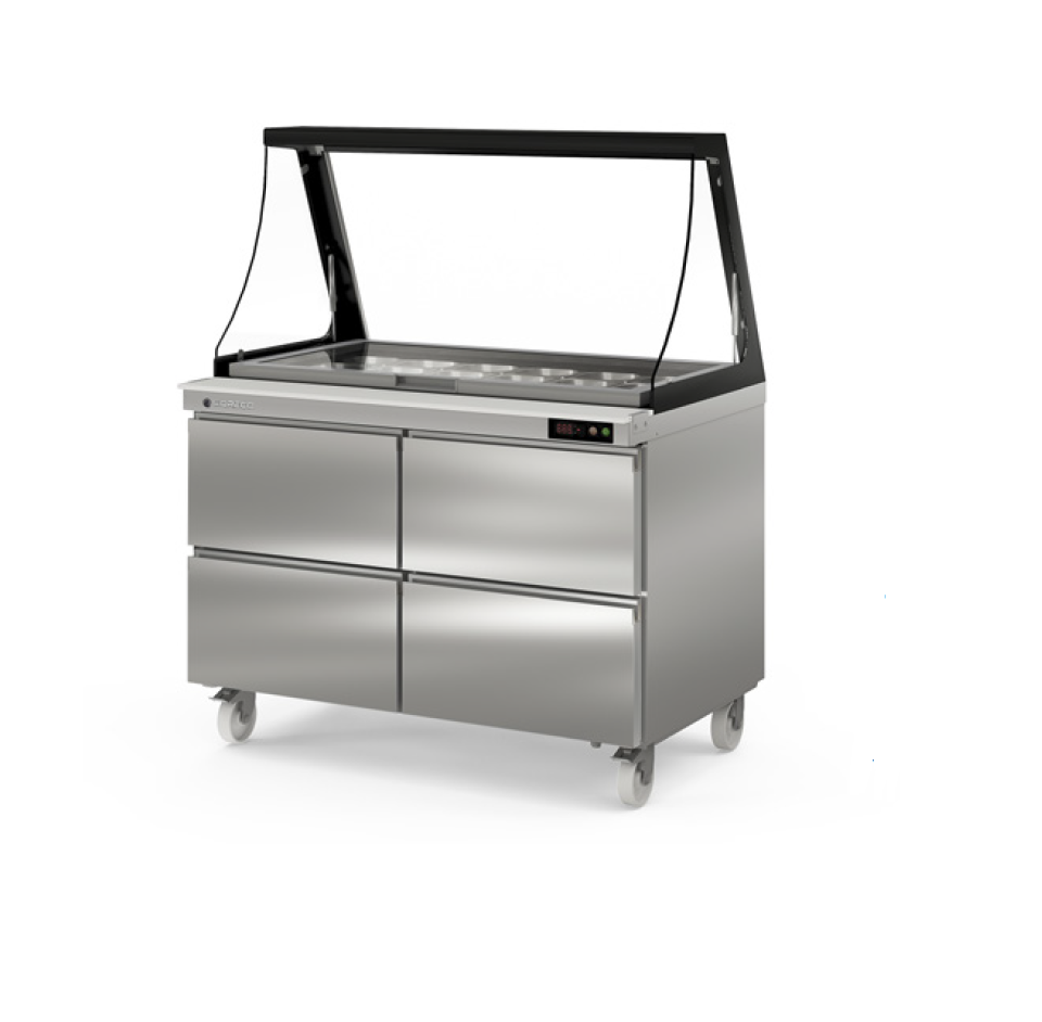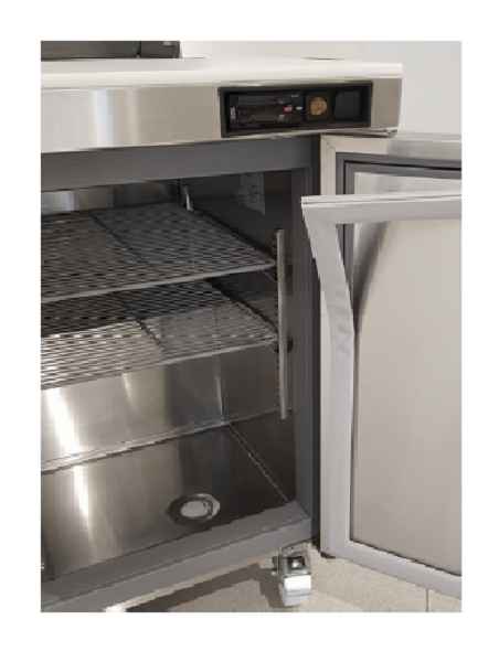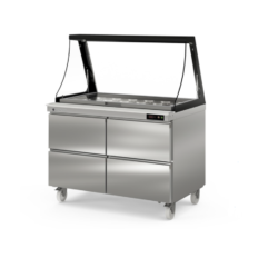 – Pracovní deska AISI-304, kapacita pro GN nádoby (viz detail) – Polyetylenový řezací stůl
