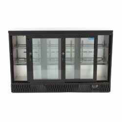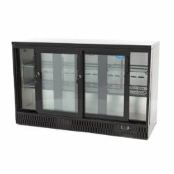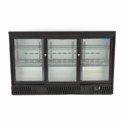 Chcete-li profesionálně prezentovat nápoje a občerstvení a zároveň je udržet chlazené, potřebujete tuto luxusně zpracovanou černou chladničku na nápoje. Má objem 323 l a je vybavena třemi posuvnými dveřmi pro snadný přístup. Ty jsou opatřeny dvojitým sklem, aby výrobky zůstaly dokonale vychlazené, dokud nebudou potřeba. Všechny dveře jsou opatřeny zámkem pro úplné uzavření chladničky. Za každými dveřmi jsou dvě nastavitelné police, takže si můžete přizpůsobit uspořádání podle svých potřeb. Pro ještě lepší prezentaci výrobků v chladničce na nápoje má vestavěné LED osvětlení.