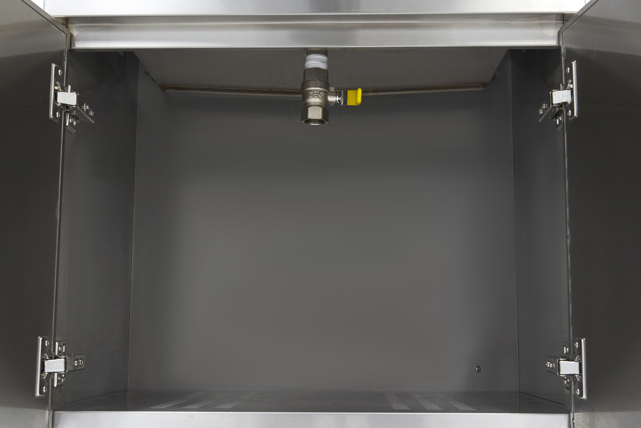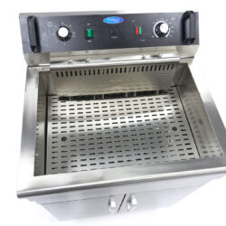 Tato všestranná fritéza je mimořádně velká, abyste v ní mohli připravit větší množství jídla. Je ideální pro smažení až 3 kg hranolek ve fritéze s objemem oleje 30 litrů. Zvládne také velké porce smažených ryb, zeleninových snacků, churros a dalších smažených potravin, aniž by zákazníci museli na svou objednávku dlouho čekat. Základní skříň je vybavena dvěma nerezovými dvířky s madly. Za dvířky je zabudovaný vypouštěcí kohout pro rychlou výměnu oleje. Kromě toho se hodí také jako úložný prostor pro další lahve s olejem. Fritéza má odnímatelné víko, které zabraňuje rozstřiku oleje, a rukojeti jsou žáruvzdorné. Můžete také připevnit dodávanou mřížku pro zachycení zbytků tuku.