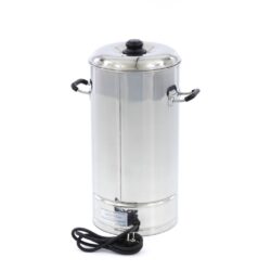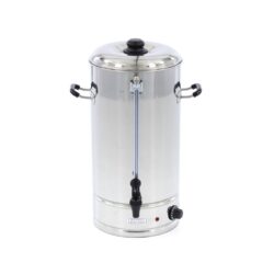 Tento praktický dávkovač horké vody je ideální pro přípravu velkého množství horkých nápojů, například šálků čaje, pro velké skupiny lidí. Najednou pojme až 20 litrů vody a udržuje ji v ideální teplotě, takže je připravena k použití, kdykoli je potřeba. Vždy tak budete mít v zásobě dostatek horké vody, abyste mohli hosty ihned obsloužit. Jedná se o dokonalý kuchyňský spotřebič pro každé stravovací zařízení nebo akci. Víko je opatřeno knoflíkem, který usnadňuje jeho zvedání, a protože je vyrobeno z plastu, nezahřívá se. Díky praktickým úchytům pro přenášení na boční straně, které jsou dobře izolované, je také možné dávkovač přenášet, aniž byste se popálili. Vaření vody trvá 20-30 minut, než je voda dostatečně horká na přípravu dokonalého šálku čaje.