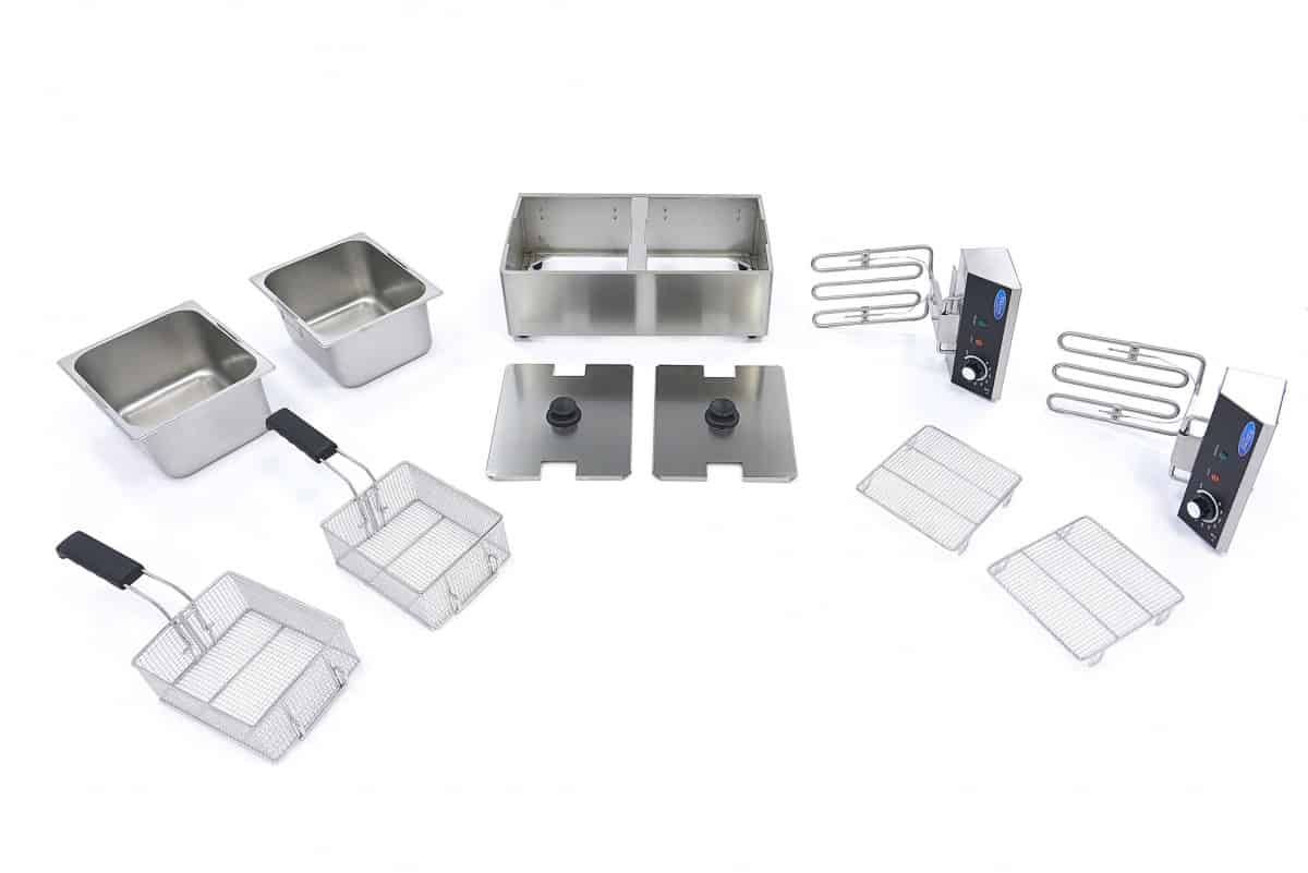 Pevná nerezová kontrukce - Vyjímatelné fritovací vany z nerezu – lze umývat v myčce