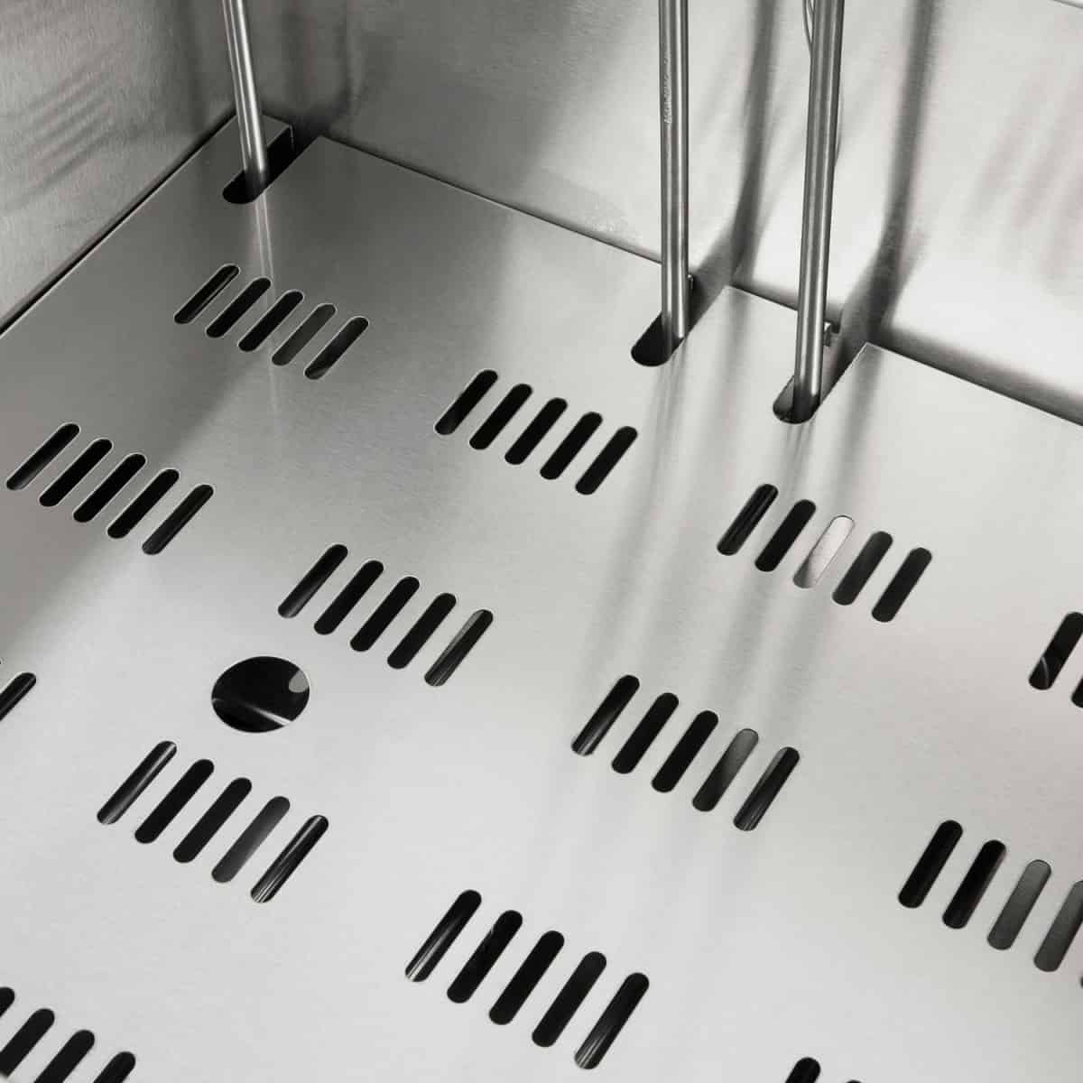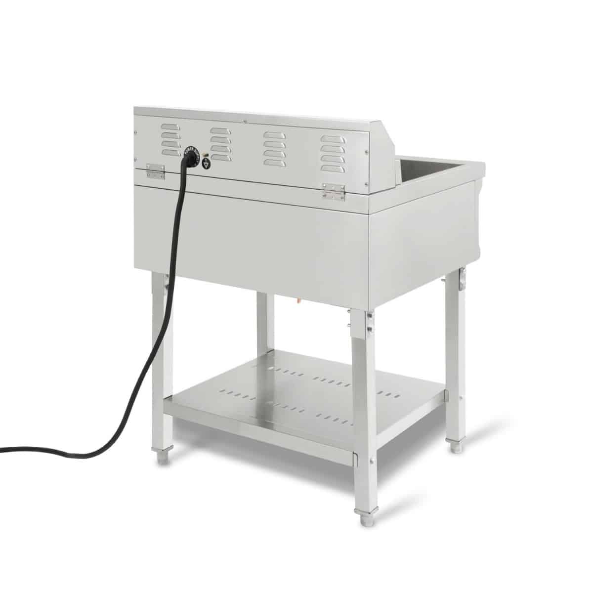 Gastro fritéza s tělem z nerezové oceli, vypouštěcím kohoutem a výkonem 7.5 kW