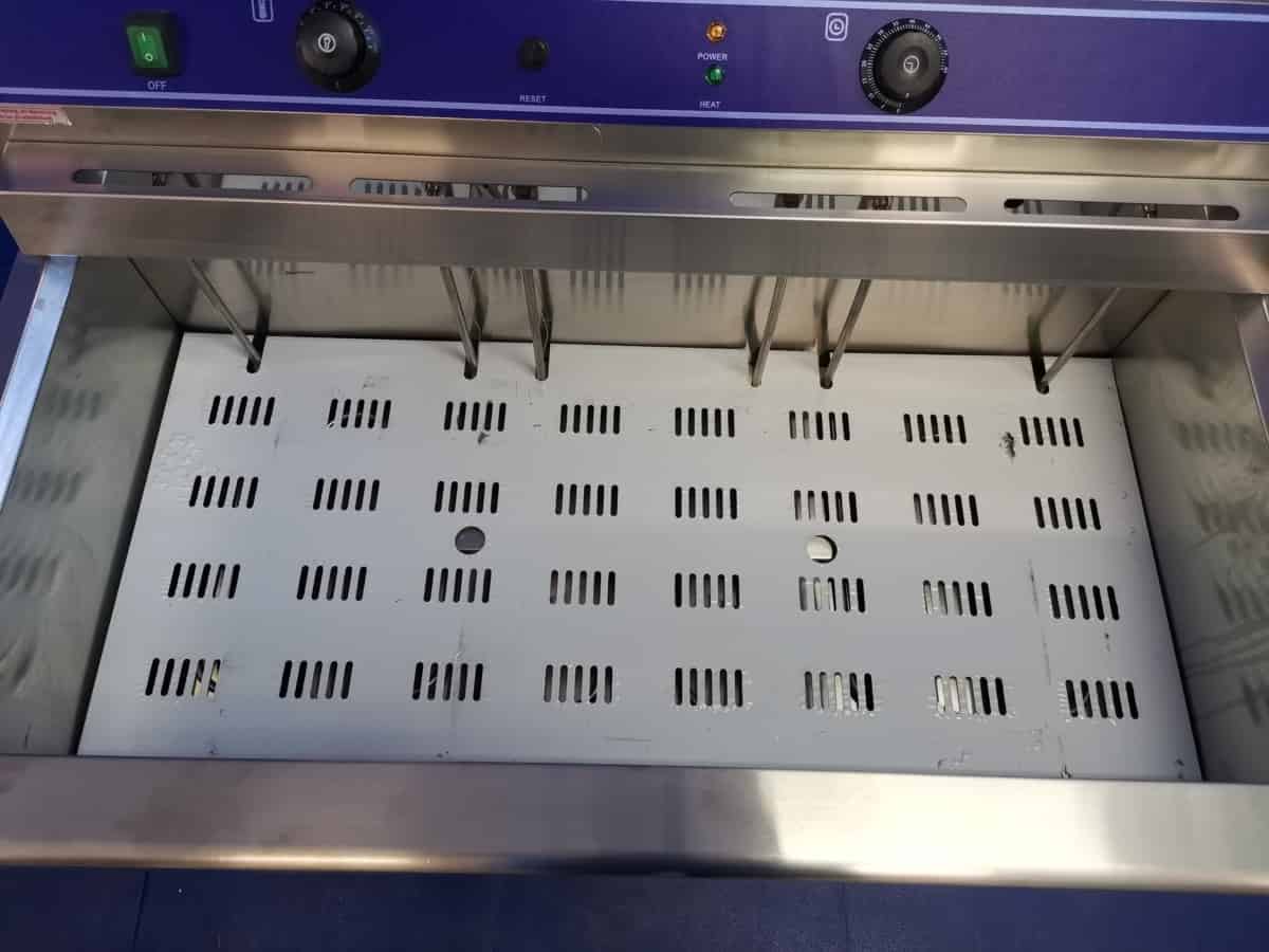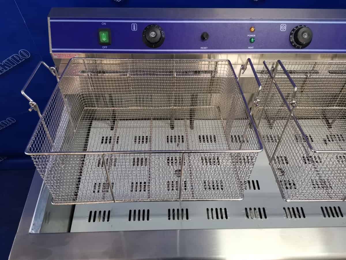 Gastro fritéza s tělem z nerezové oceli, vypouštěcím kohoutem a výkonem 9 kW