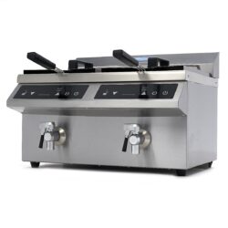 Díky indukčnímu ohřevu fritézy lze přesně regulovat teplotu. Pro nastavení správné teploty v každé 8litrové fritéze si můžete vybrat z 11 různých nastavení teploty v rozmezí 60 °C až 190 °C. Efektivní přenos tepla zajišťuje, že olej zůstane přesně na té správné teplotě, takže můžete smažit ty nejchutnější pochoutky nejen doma, ale i v profesionální kuchyni. Dvojitá fritéza má uživatelsky přívětivý dotykový panel a LED displej. Časovač na indukční fritéze lze nastavit od 0 do 120 minut.