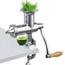 - Tento odšťavňovač trávy je vyroben z nerezové oceli 304, je nerezový, není snadno korodovatelný a je hygienický. Snadno se sestavuje a snadno se čistí. Má design pro připevnění svěrky stolu, což zajišťuje silnou stabilitu při odšťavňování. Odšťavňovač je ideální pro odšťavňování pšeničné trávy, různé zeleniny a většiny druhů ovoce. Ideální pro domácí použití.