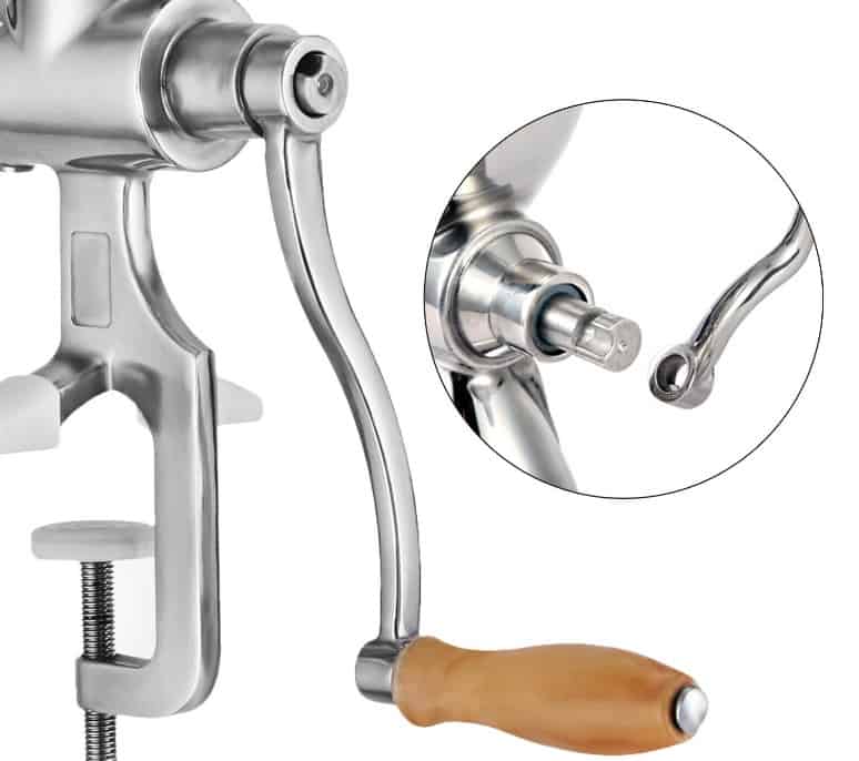 - Tento odšťavňovač pšeničné trávy je vybaven ergonomickou dřevěnou rukojetí, kterou lze snadno vyjmout a ušetřit tak místo.