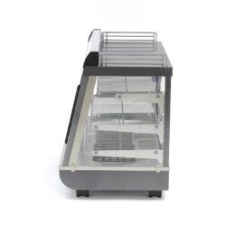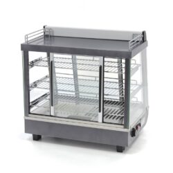 Zákazníci si rádi pochutnají na teplých pokrmech, aniž by museli dlouho čekat na svou objednávku. Tato vyhřívaná vitrína o objemu 96 litrů má šířku 67,5 cm. Je ideální pro udržování správné teploty pečiva, předkrmů, grilovaných pokrmů a občerstvení. Přední strana je vybavena skleněnými posuvnými dveřmi a uvnitř je zabudované LED osvětlení, takže zákazníci snadno uvidí, který výrobek si vybírají. Také v zadní části vitríny na teplé pokrmy jsou posuvná dvířka pro efektivní doplňování pokrmů. Tato vitrína je vhodná nejen k udržování teplých pokrmů, ale také k atraktivní prezentaci připravených jídel.