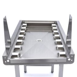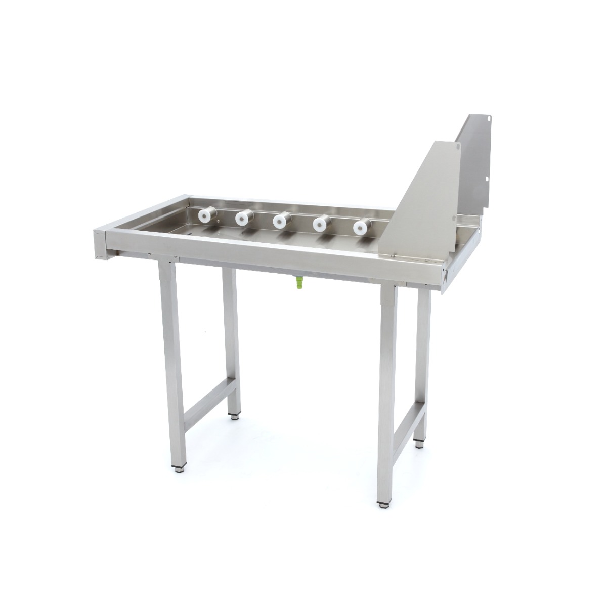 Tento válečkový stůl je vyroben z nerezové oceli, která je známá svou odolností a snadnými čisticími vlastnostmi. Připojený motor pohybuje válečky, což usnadňuje výstup čistého nádobí z myčky bez jakýchkoli komplikací.