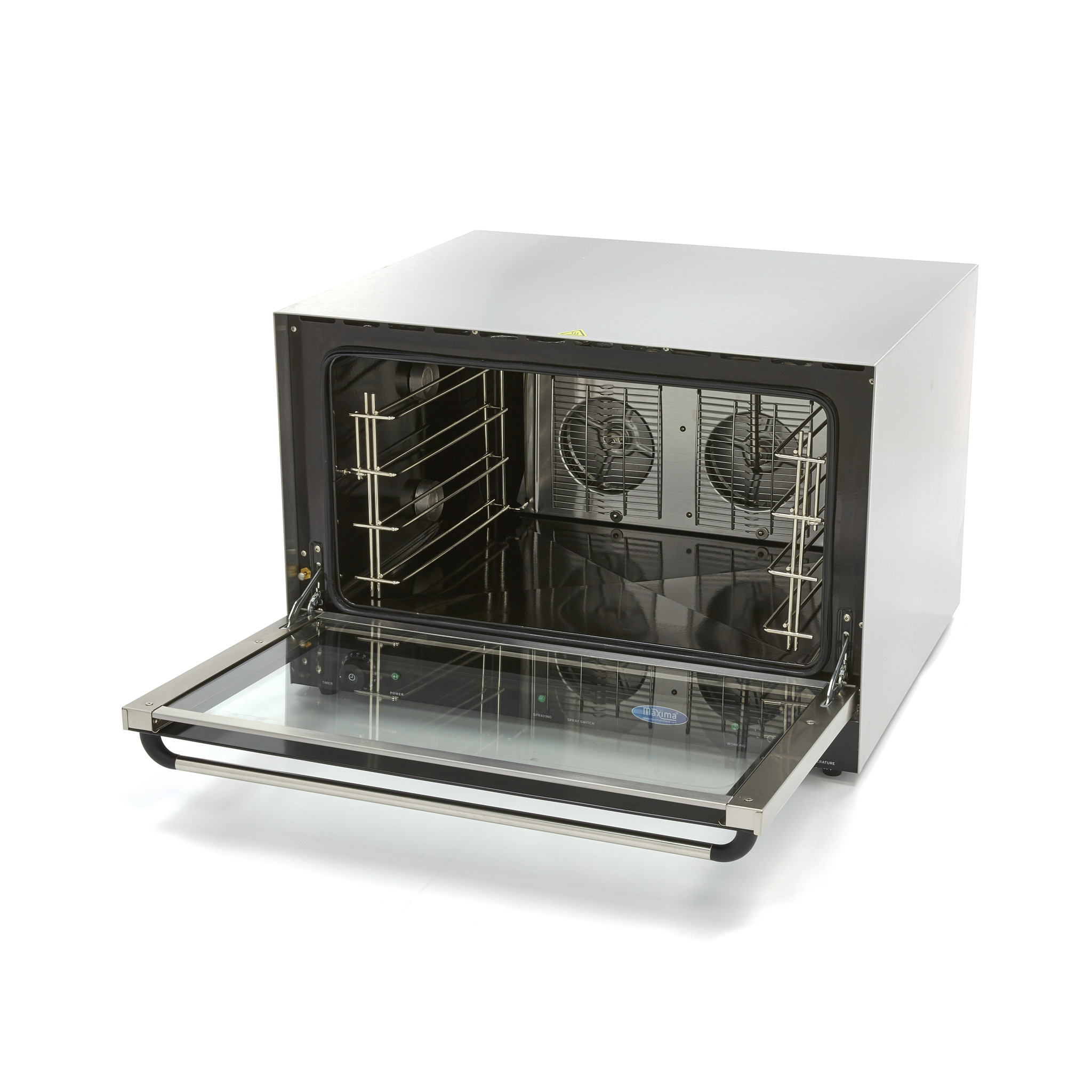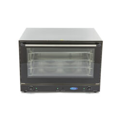 Konvekční trouba je dodávána se čtyřmi plechy o rozměrech 60 x 40 cm, které se dokonale vejdou dovnitř trouby. Mezi plechy je vzdálenost 8 cm. Troubu můžete snadno ovládat pomocí analogových tlačítek. Je také vybavena termostatem pro teploty v rozmezí 0 až 300 ºC. Světelné kontrolky ukazují, kdy trouba dosáhla správné teploty. Pomocí nastavitelného časovače můžete nastavit dobu pečení v rozmezí 0 až 120 minut. Kromě toho se jedná o odolný model díky konstrukci z nerezové oceli a smaltované vnitřní komoře trouby.