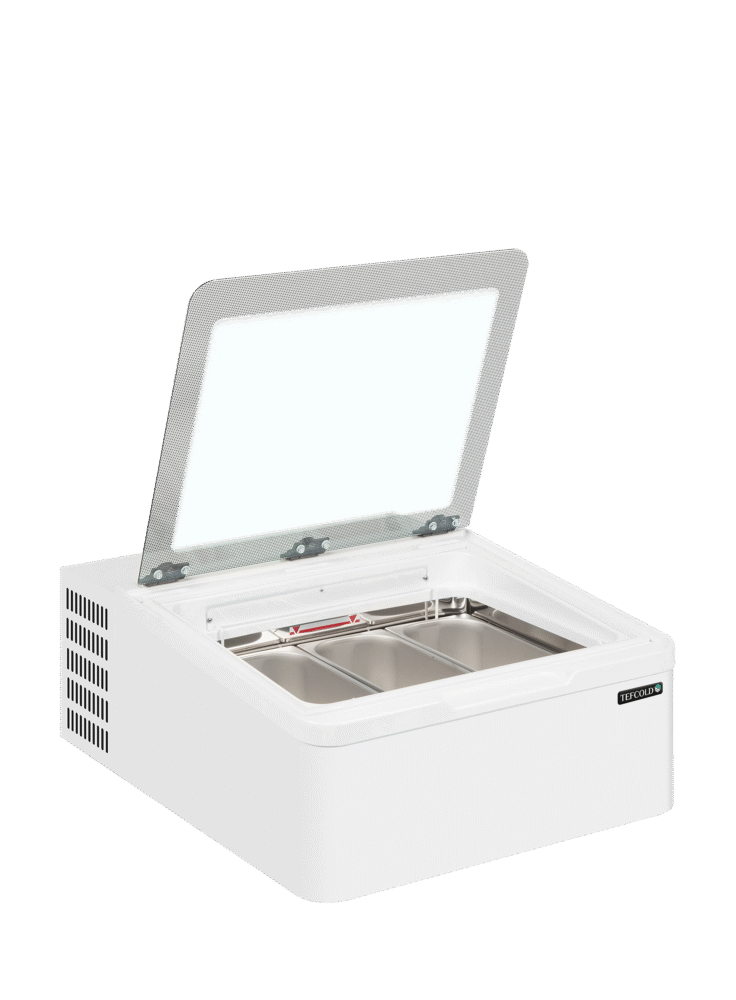 ICE3 je ideálním řešením, když potřebujete optimalizovat prodej kopečkové zmrzliny a zároveň máte omezený prostor. Je navržen tak, aby se vešel na pult, pojme tři vaničky a lze jej použít jak v přední, tak v zadní části podniku, což zajišťuje rychlý a efektivní servis oblíbených příchutí zmrzliny. Na vyžádání je možné objednat také vyvýšený podstavec a zásobník na nanuky.