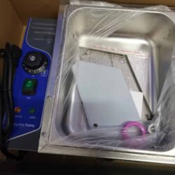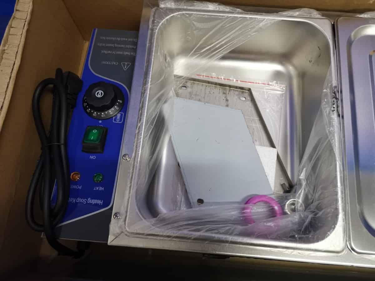 Sklo zakrývá čelní a vrchní stranu vodní lázně, z boků pak nerezové, plné úchyty.