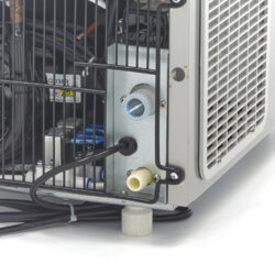 Tento profesionální výrobník ledu je vzadu chlazený vodou, takže jej lze používat i v teplých místnostech nebo venku. Na ovládacím panelu se nachází řada kontrolních světel, která vás upozorní na naplnění zásobníku, příliš nízkou hladinu vody nebo na případné chyby či poruchy. To je důležité, abyste přesně věděli, jaká opatření je třeba přijmout, aby výroba kostek ledu mohla co nejdříve pokračovat. Výrobník ledu je navíc vybaven ochranou proti přetížení, takže můžete bezpečně pokračovat v práci a nemusíte se obávat přetížení spotřebiče. Účinný chladicí systém zajišťuje, že kostky ledu jsou dobře tvarované a kvalitní. Chladivo používané v tomto zařízení je R290. Tento profesionální výrobník ledu je dodáván s přívodními hadicemi, které je třeba připojit k přívodu pitné vody. Výrobník ledu není vybaven vypouštěcím čerpadlem. Vypouštěcí hadice by měla být připojena níže, než je výstupní otvor stroje.