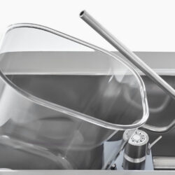 Tento robustní šlehačkový stroj má výrobní kapacitu až 100 l čerstvě ušlehané smetany za hodinu. Rotační čerpadlo dokáže dokonale zpracovat lehké i těžké krémy, abyste získali hladkou a stabilní strukturu. Můžete jej použít nejen k výrobě šlehačky, ale tekutou smetanu i šlehačku lze v tomto přístroji také chladit. Tekutá smetana zůstává v 5litrové nádrži trvale vychlazená na teplotu 4⁰C, kterou snadno odečtete pomocí digitálního ukazatele teploty. Protože je nádoba chlazena nepřímo, nedochází k oddělení tuku a vody. Spotřebič je také vybaven systémem chlazení vzduchem a používá se chladivo R290. Kromě toho lze díky průhlednému víku snadno zjistit, kolik tekuté smetany se v nádrži nachází. Jedná se také o velmi tichý přístroj s jednoduchými, ale robustními ovládacími tlačítky.