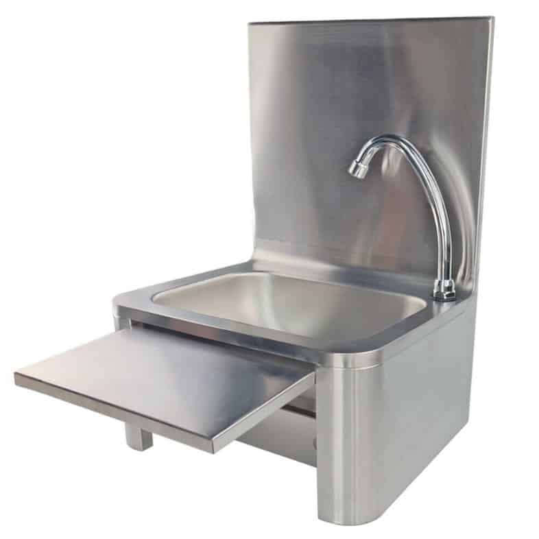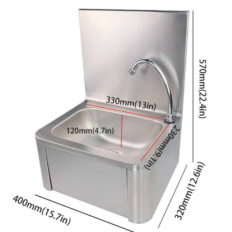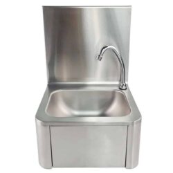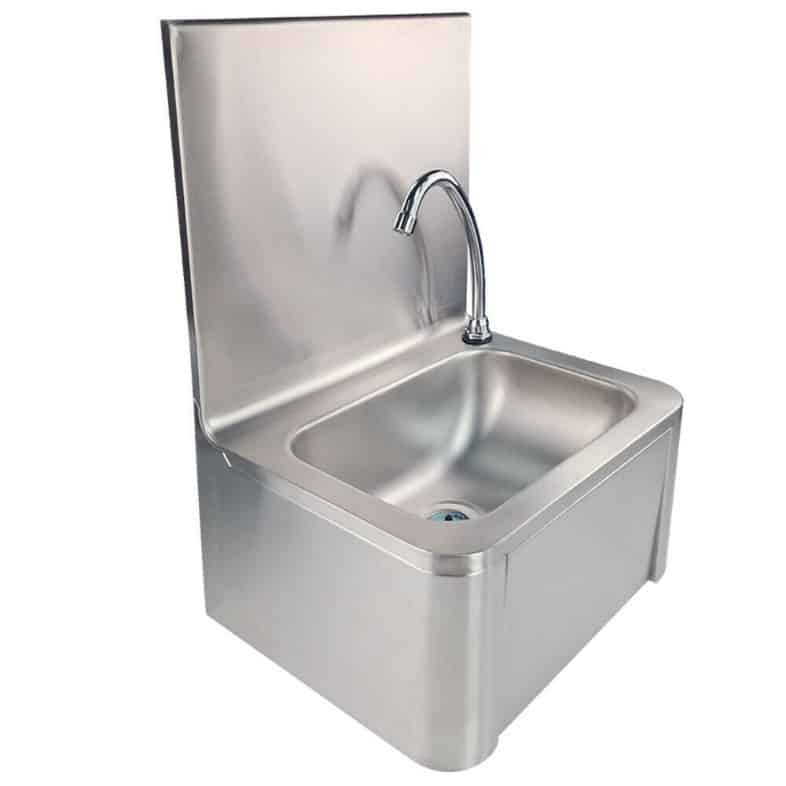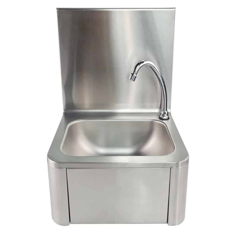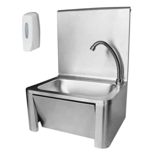Nerezové nástěnné umyvadlo se zadní stěnou s bezdotykovým ovládáním kolenem včetně příslušenství